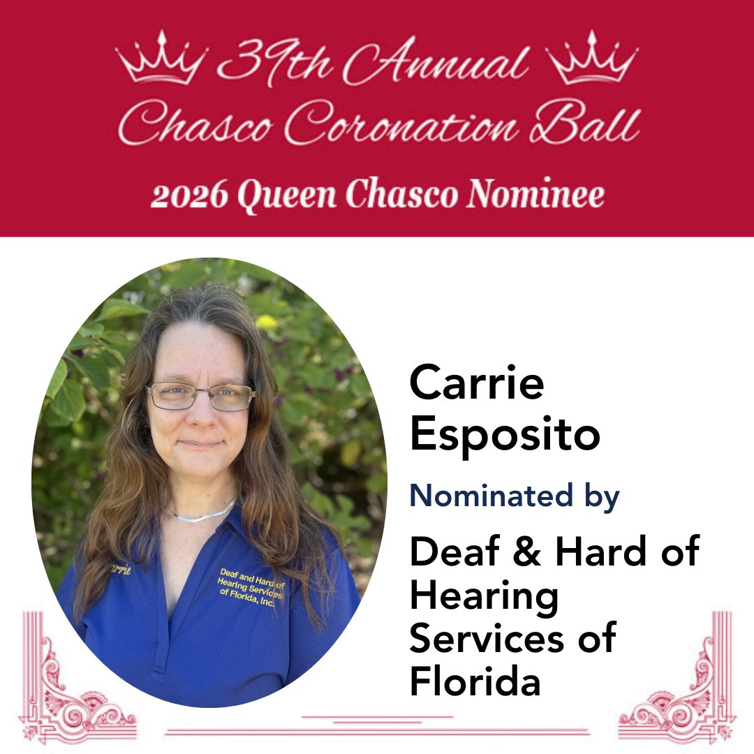 New Port Richey, Florida – A historic milestone has been reached in the celebration of community leadership and inclusion. Carrie Esposito has been nominated as the first Deaf candidate for the title of Queen Chasco at the upcoming Chasco Fiesta Coronation Ball.